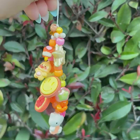 (3/4)One of a kind charm keychain in orange and white with hello kitty including orange slice, duck, stars, and ice cream pop